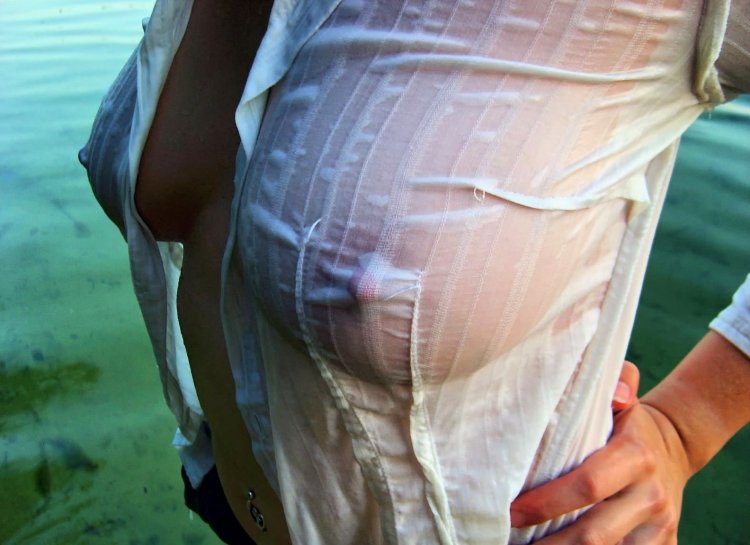 Женская грудь просвечивается сквозь футболку (30 фото)
