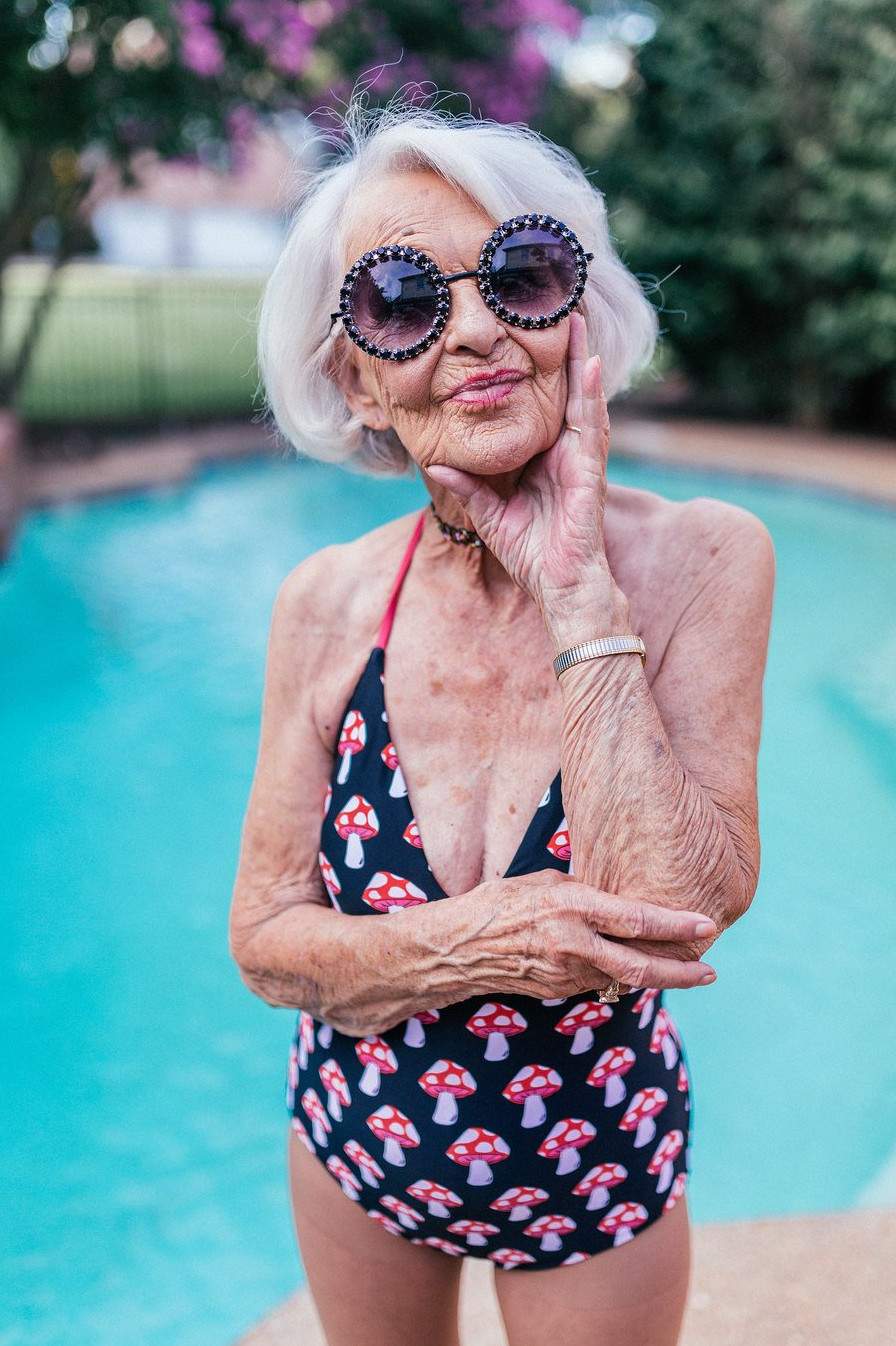 Древняя бабушка в купальнике