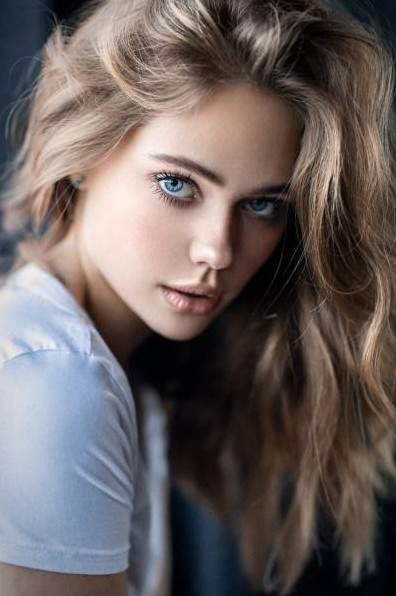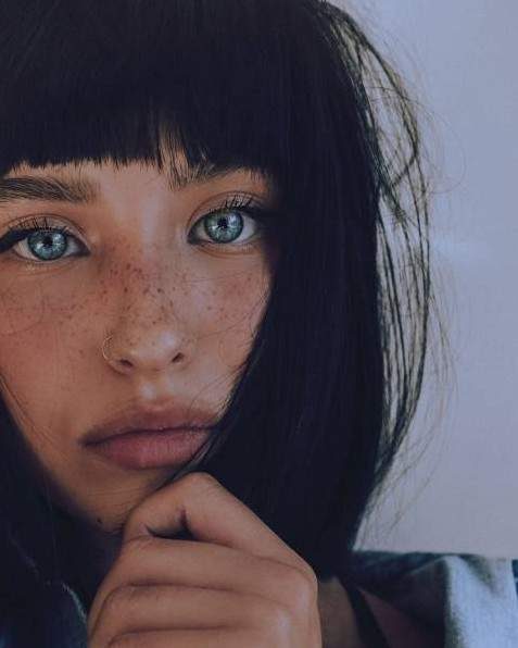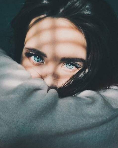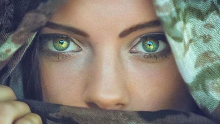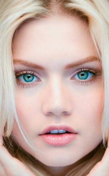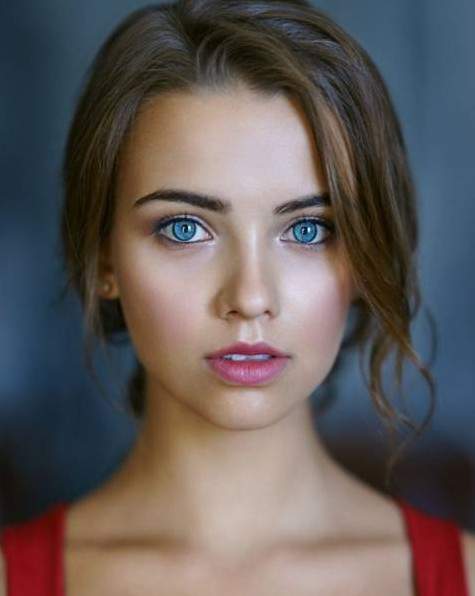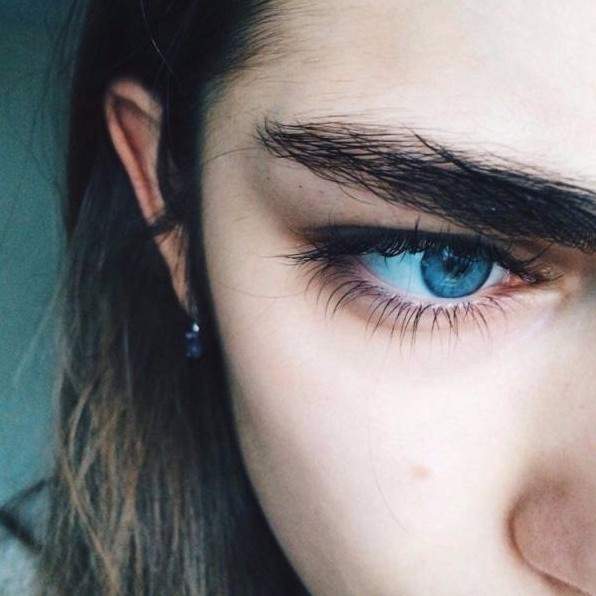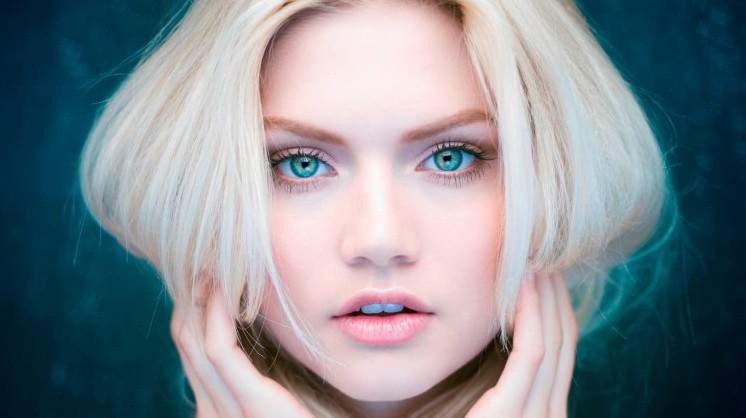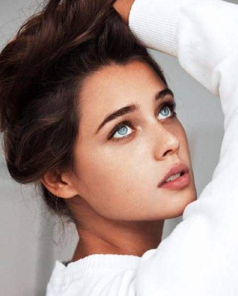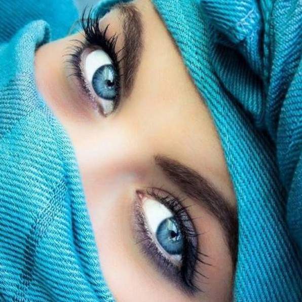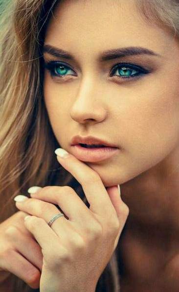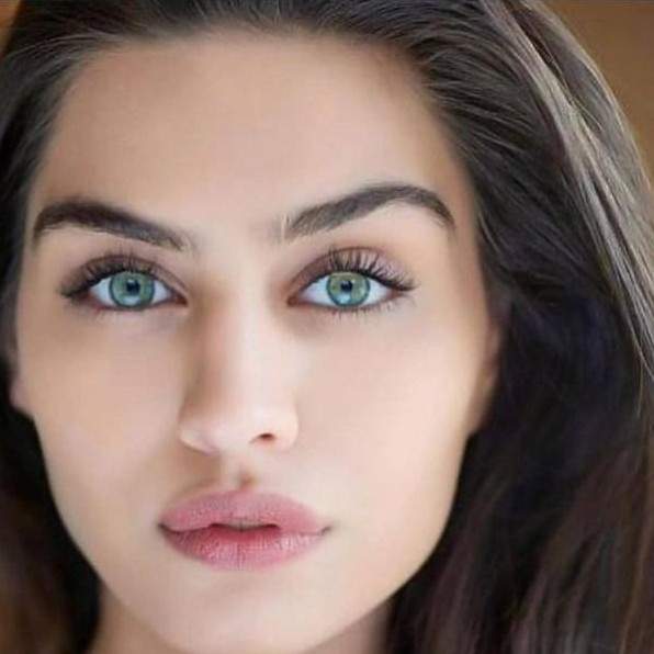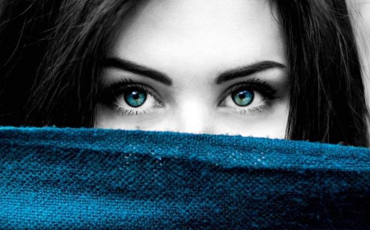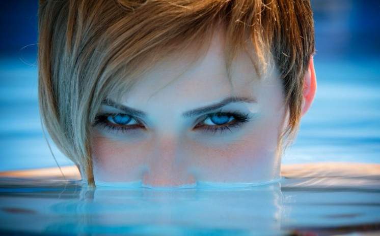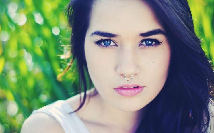 Соблазнительная черноволосая симпатичная женщина с голубыми глазами.