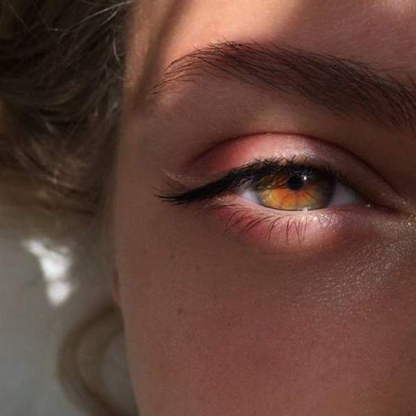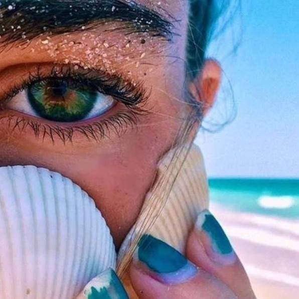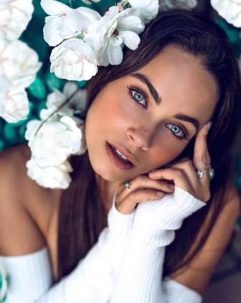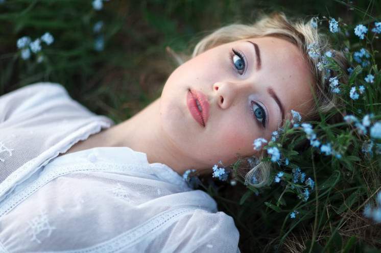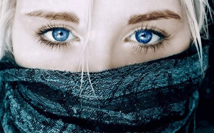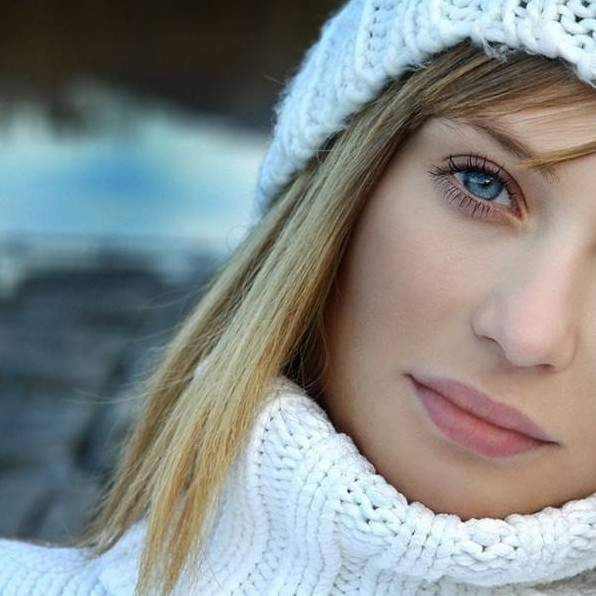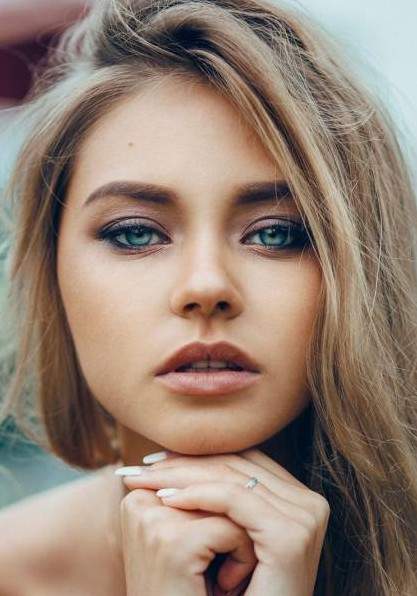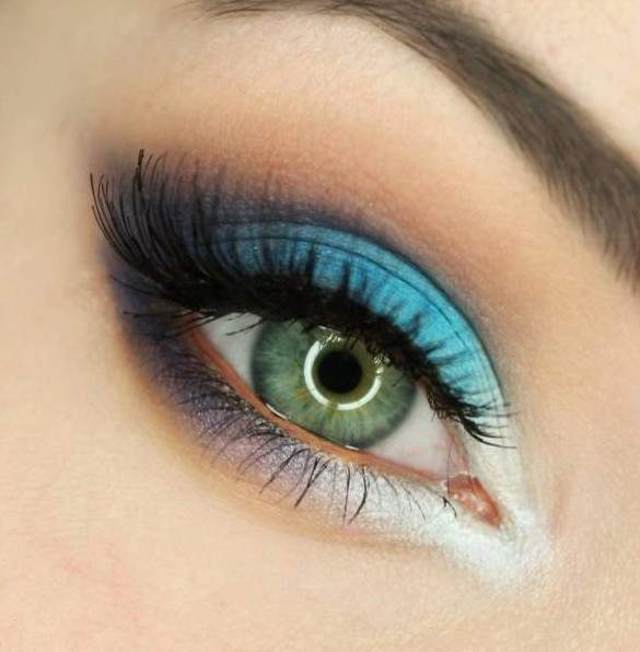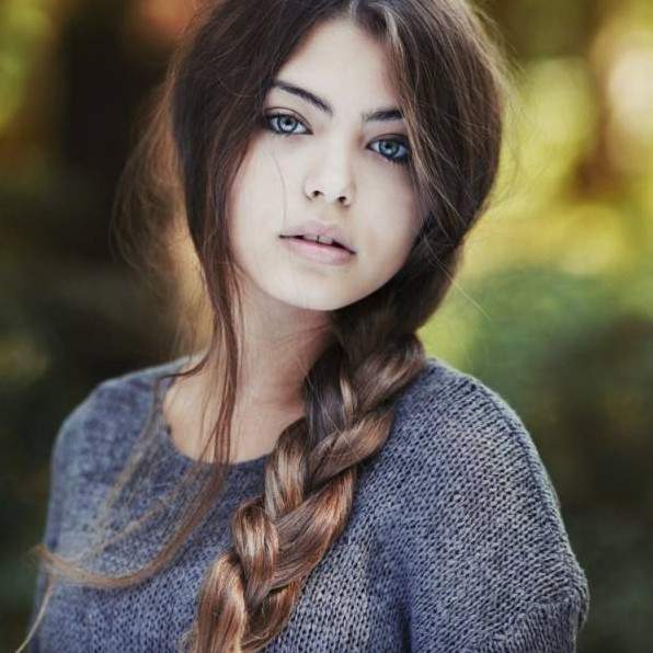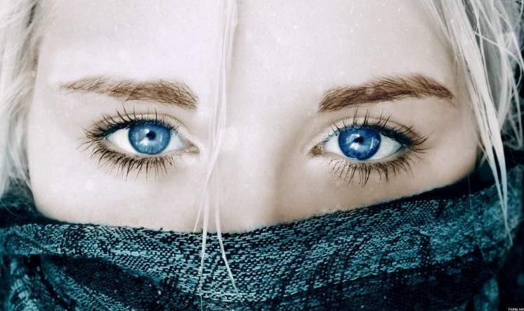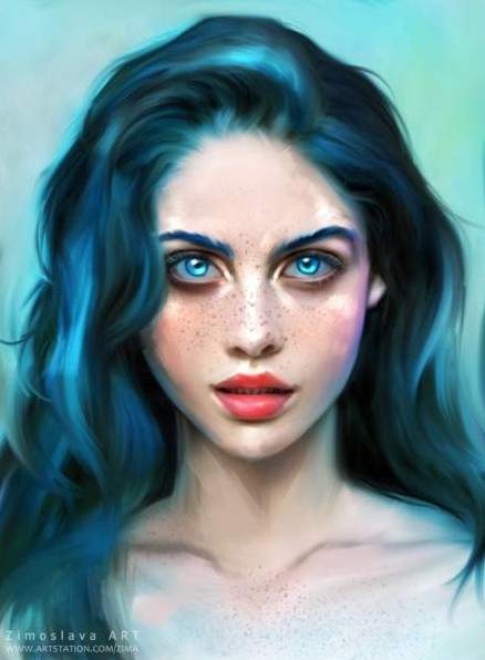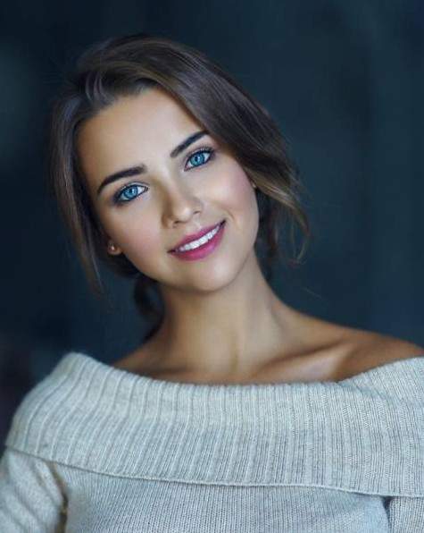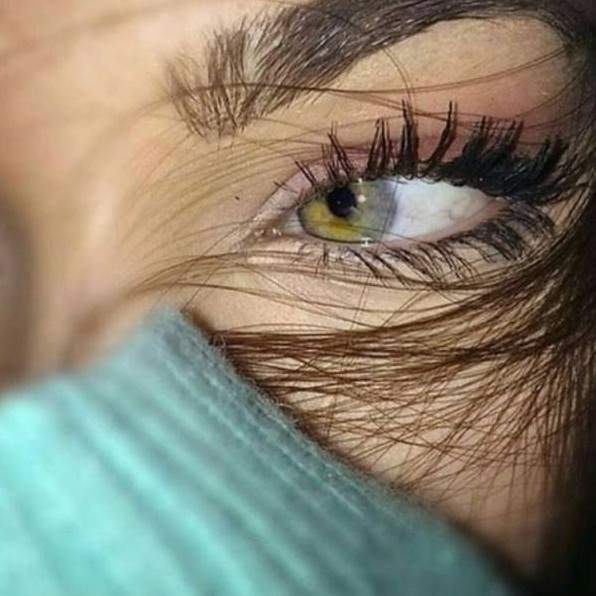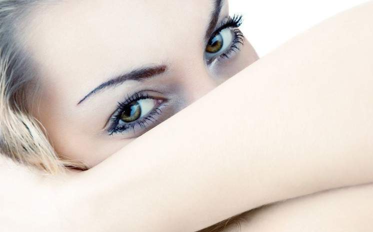 Соблазнительная черноволосая симпатичная женщина с голубыми глазами.