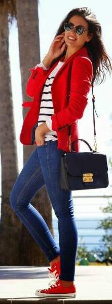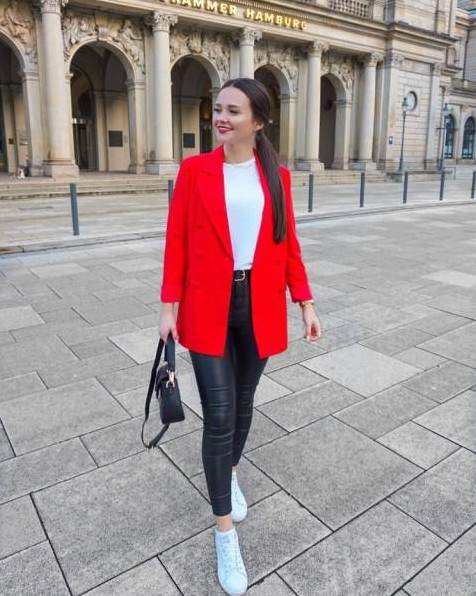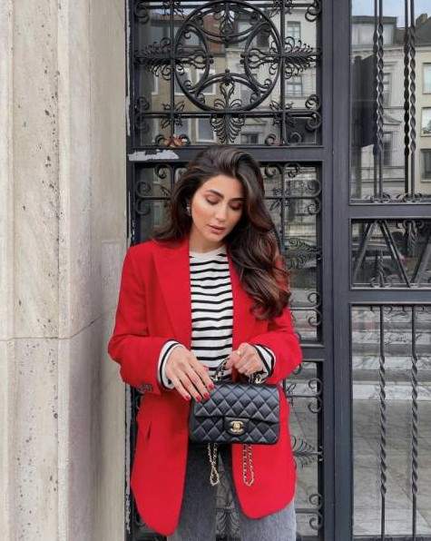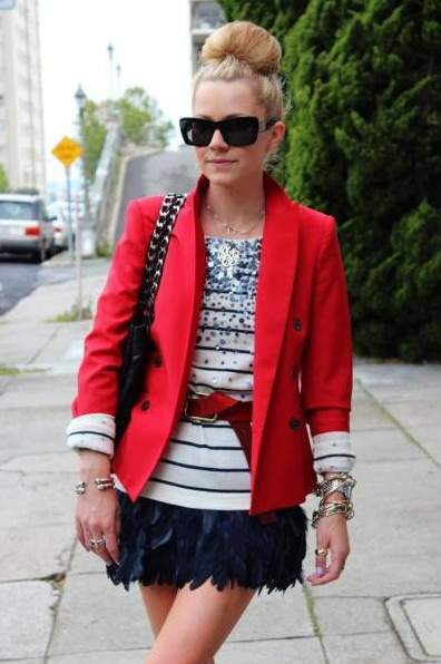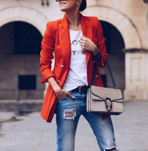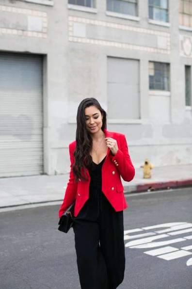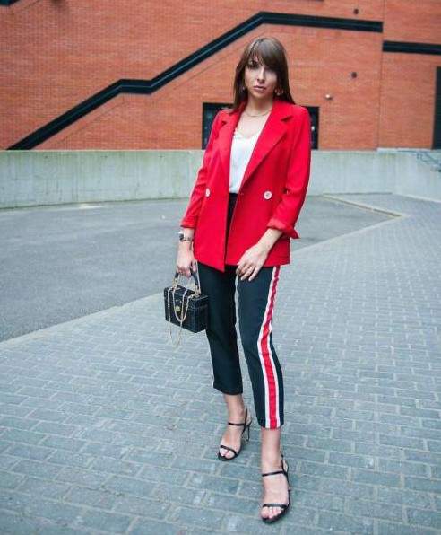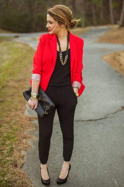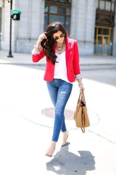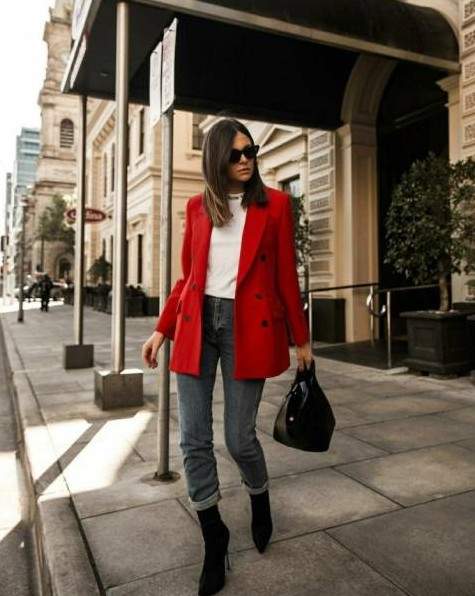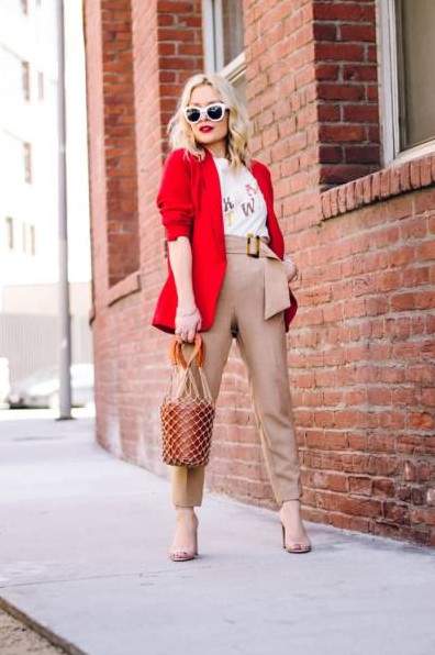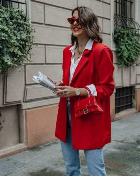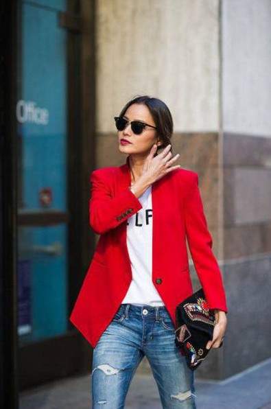 Модные образы с красным пиджаком