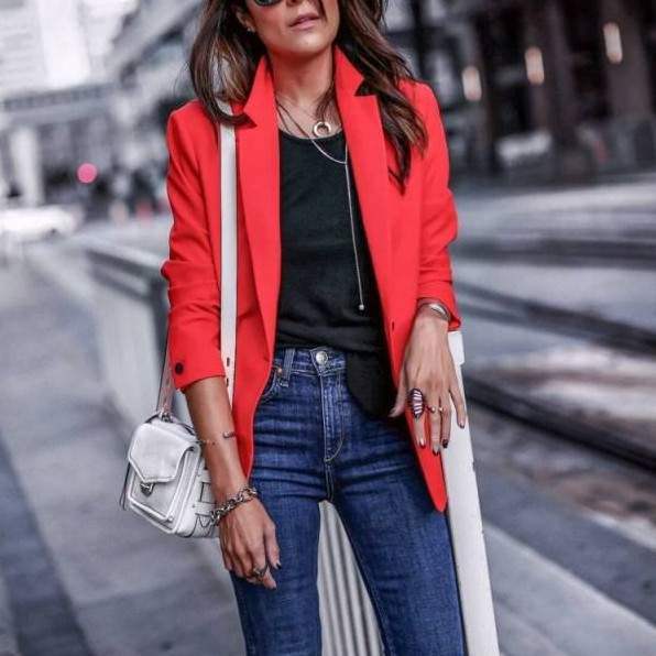 Престижный дамский образ: красный пиджак.