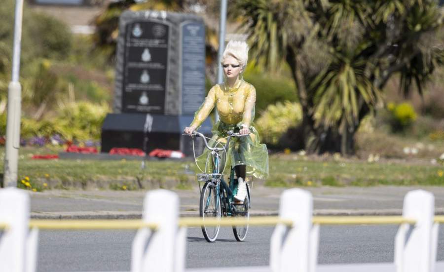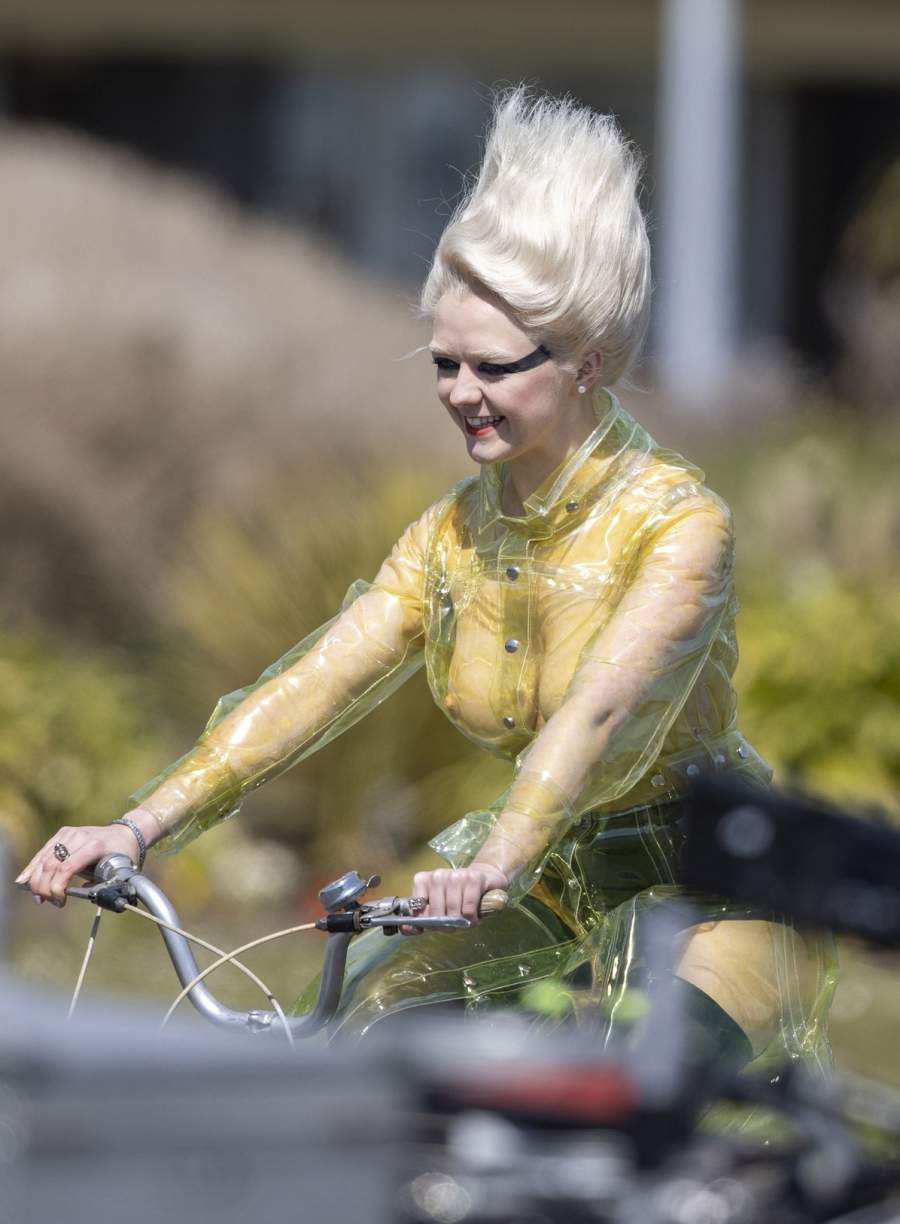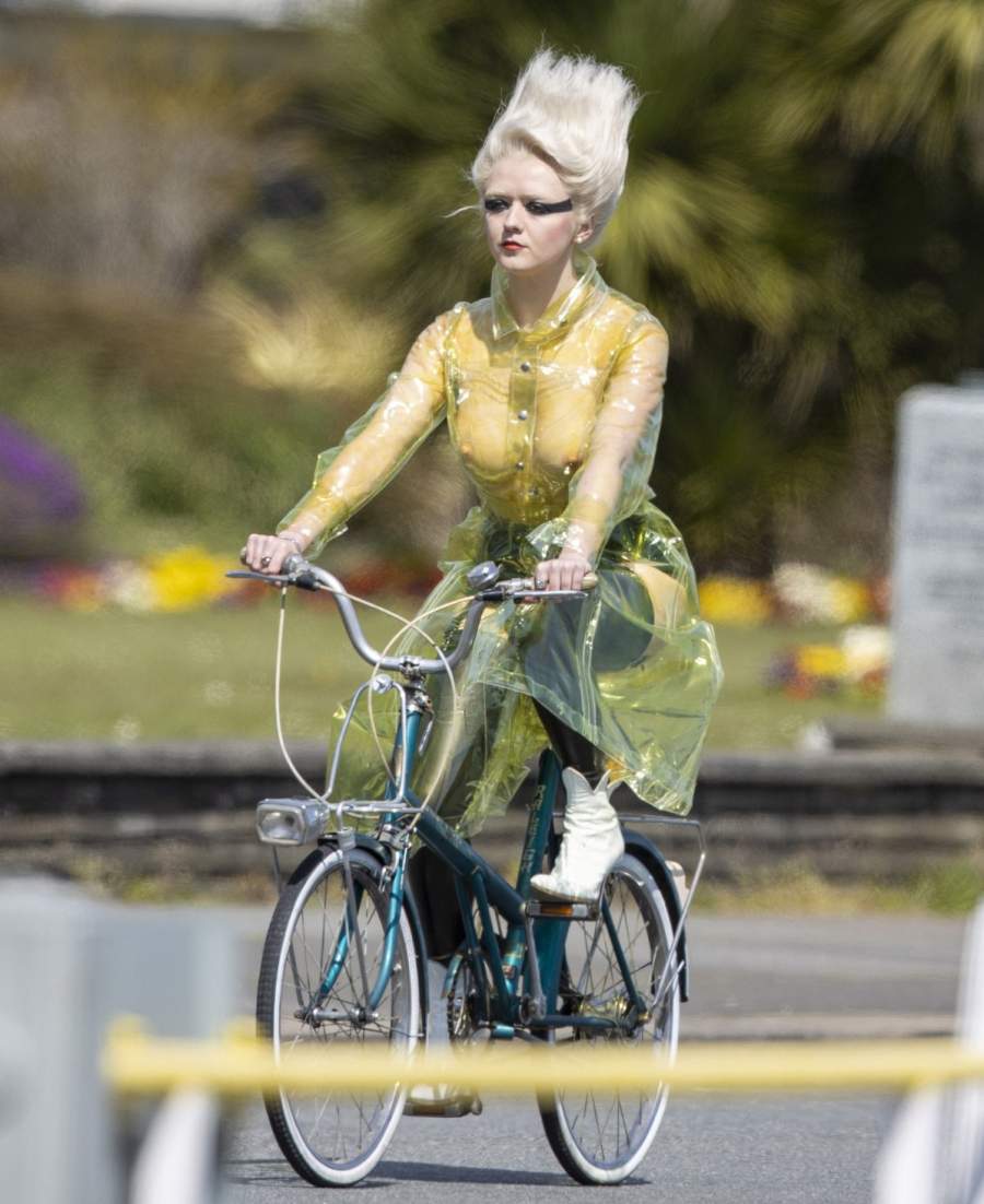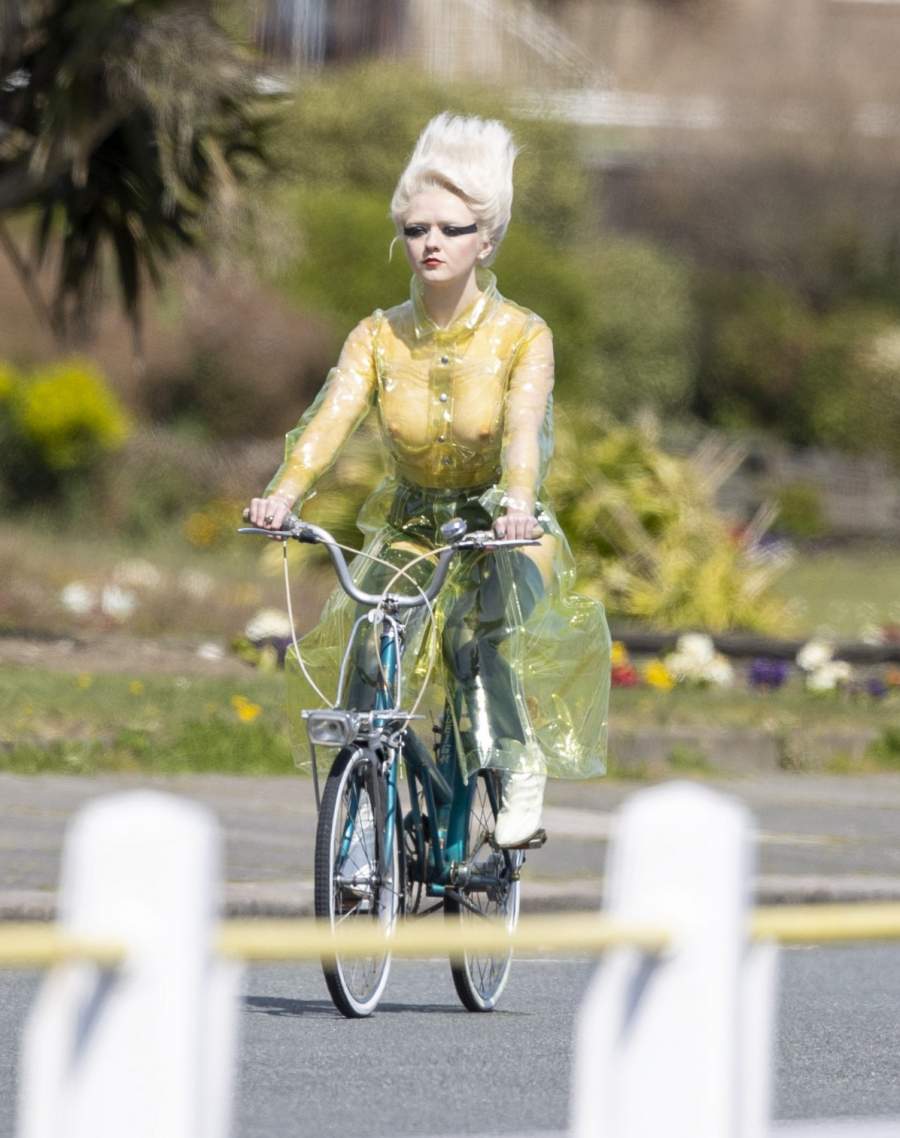 Английская актриса Maisie Williams в прозрачном плаще - фото