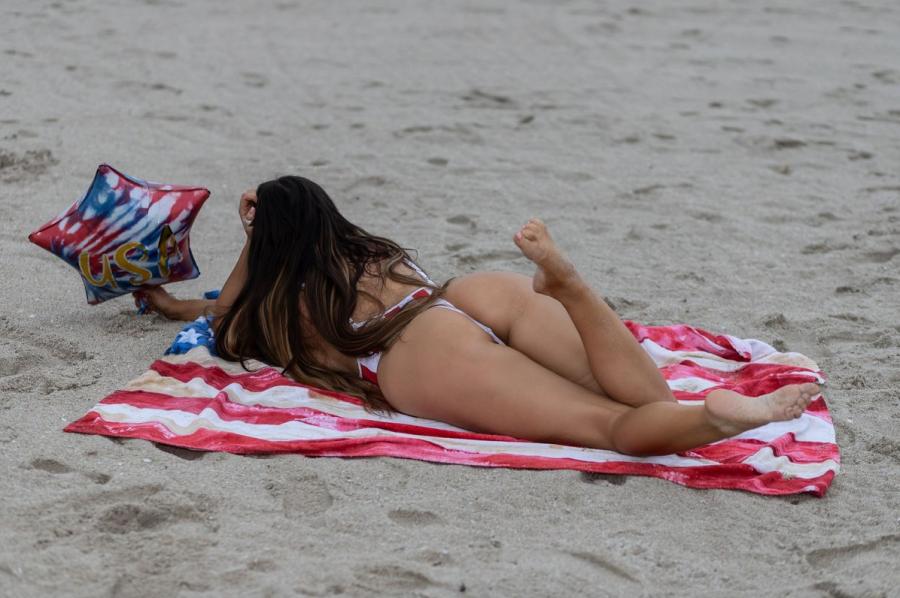 Ох, какая прекрасная модель Клаудия! Она просто умопомрачительна в своем бикини на пляже в Солнечном Майами. День независимости США никогда еще не был столь горячим и пылким благодаря этой сексуальной итало-американской красотке. Просто взгляни на ее соблазнительные формы и бесконечно длинные стройные ноги - как не влюбиться в нее?! Вот я готов отдать свою независимость за такую потрясающую компанию на пляже. Даже патриотизм здесь ни к чему, когда рядом с тобой такая искусительница. А ты, Клаудия, просто воплощение американской мечты - красивая, сексуальная и свободная.