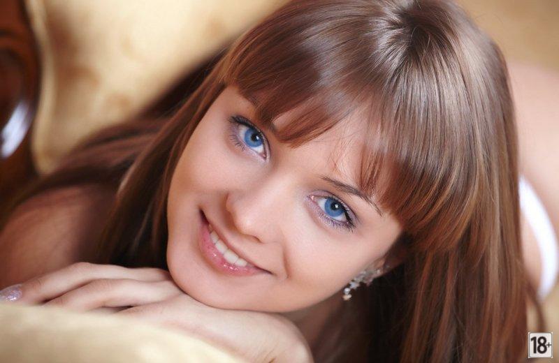 Вы искали: Эротическая подборка по теме - Голая белокурая девушка позирует в купальнике на диване с голубыми глазами.
