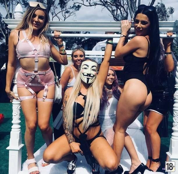 Қыздардың күліп іш киімін шешіп дене сұлулықтарын жартылай көрсететін қызық ересек юмор фотолары