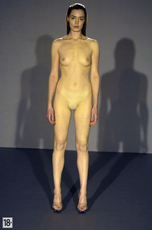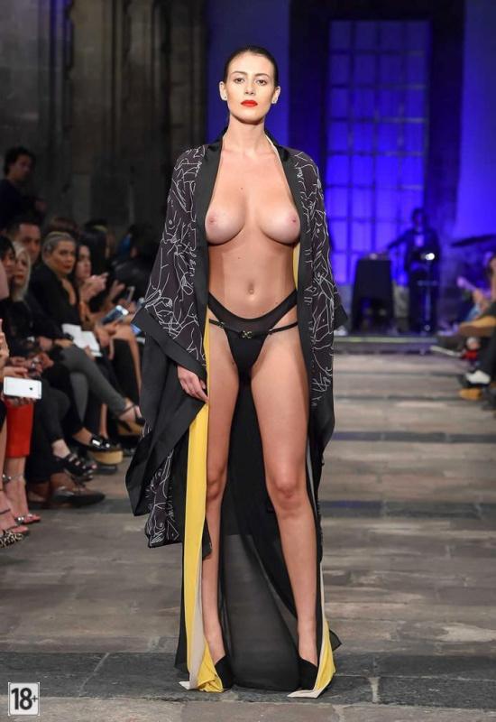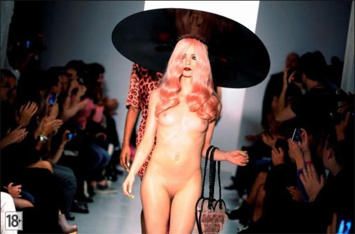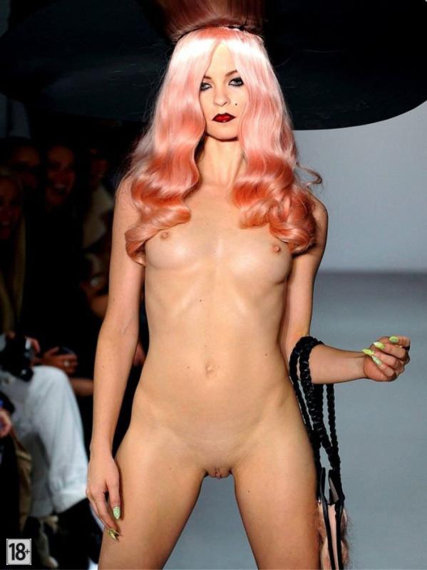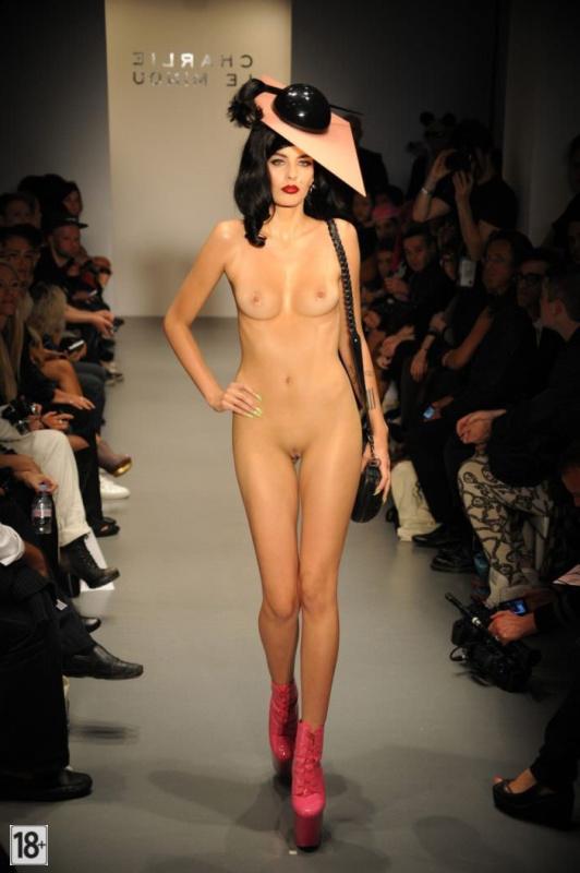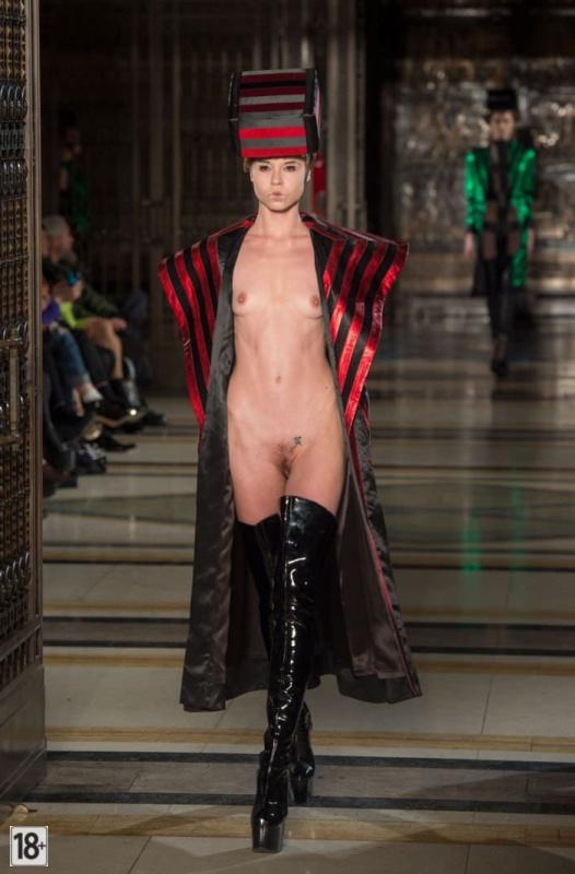 Голые модели на подиуме без нижнего белья и с открытыми ногами