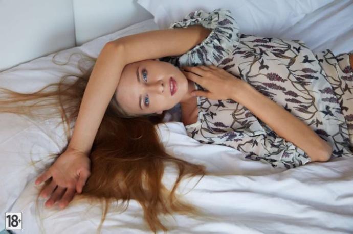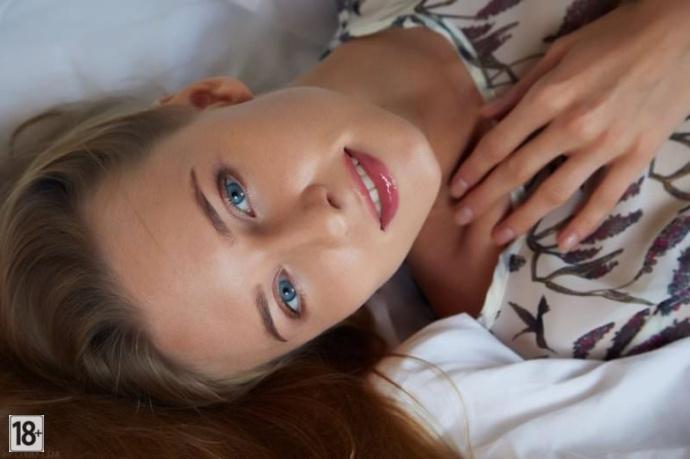 This saucy blonde sprawls buck naked on crisp white sheets, her piercing blue eyes daring you to stare while she spreads wide for her drooling fans. She’s owning every filthy inch of this mind-blowing photoshoot, teasing her slick curves and begging to get you rock hard. Dive in and worship that juicy body like she craves.