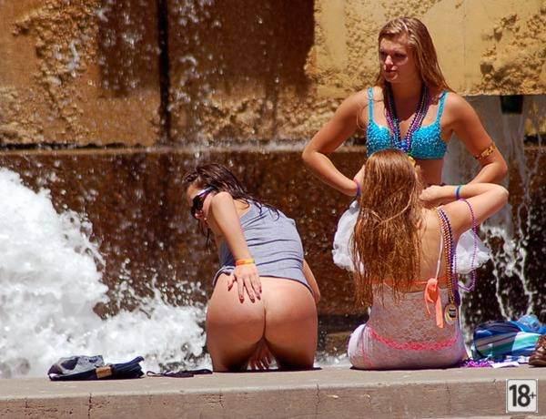 Соблазнительные девушки без трусиков под юбкой